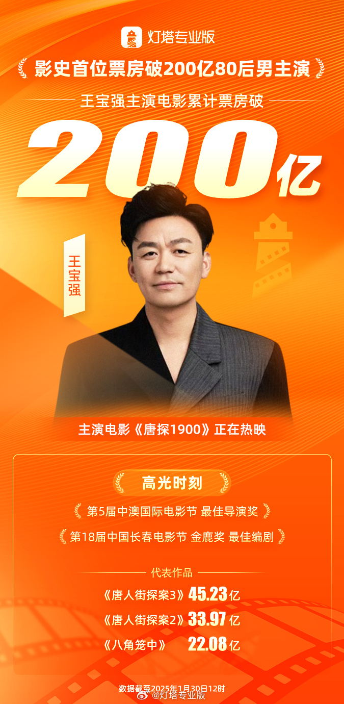 此前报说念:王宝强成为首位票房破200亿80后男主演