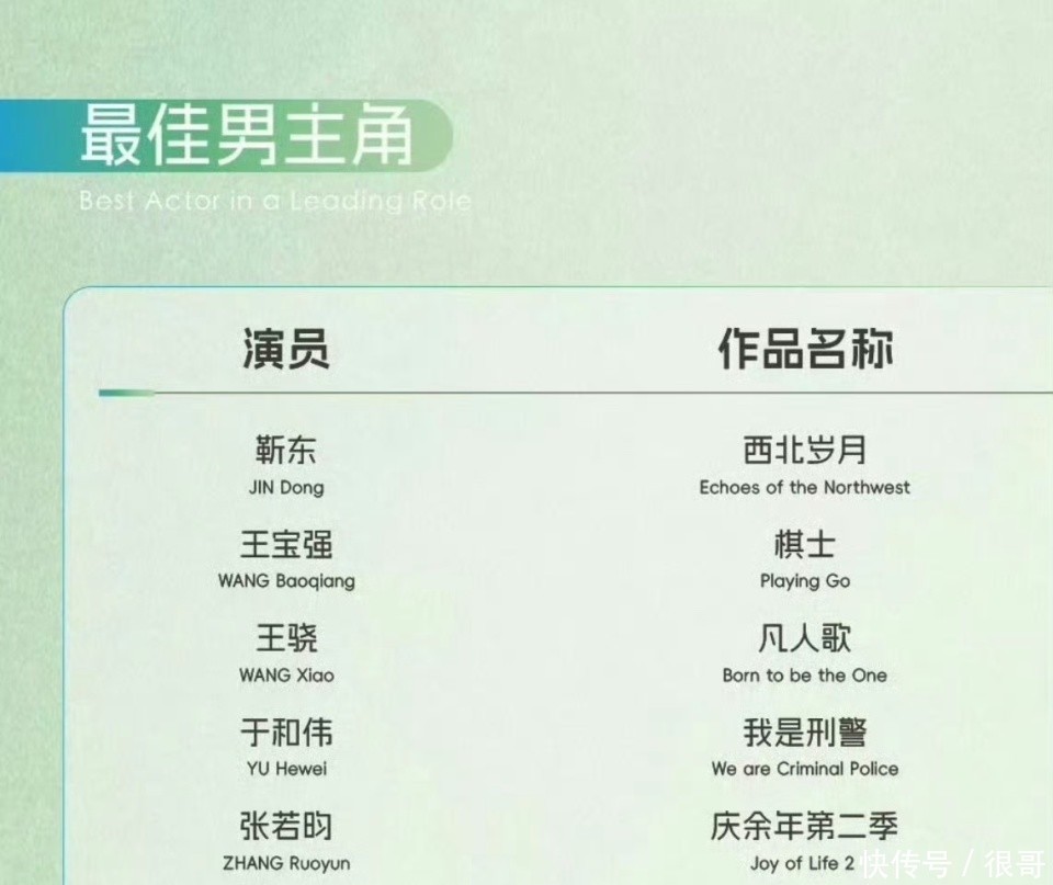 最好男主角的提名名单中,靳东、王宝强、王骁、于和伟、张若昀王人是不雅众熟悉的实力派演员。