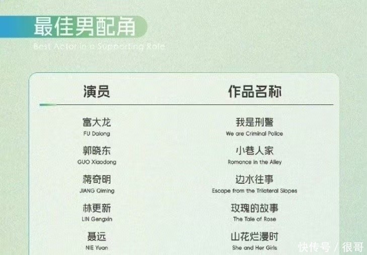 最好男碎裂的提名中,富大龙、郭晓东、蒋奇明、林更新、聂远王人是演技深湛的演员。他们在各自的作品中诚然是碎裂,但却用出色的扮演为剧集增色不少。