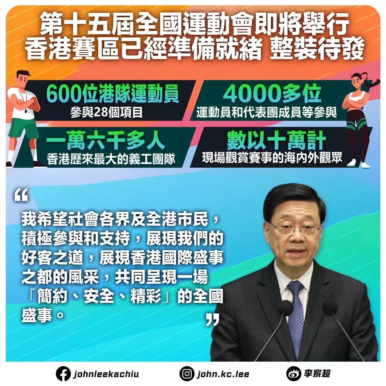 这次香港派出逾600位默契员参与28个神色,代表团鸿沟往届最大。李家超明日(10月15日)会主捏代表团授旗典礼,为香港默契员打气。