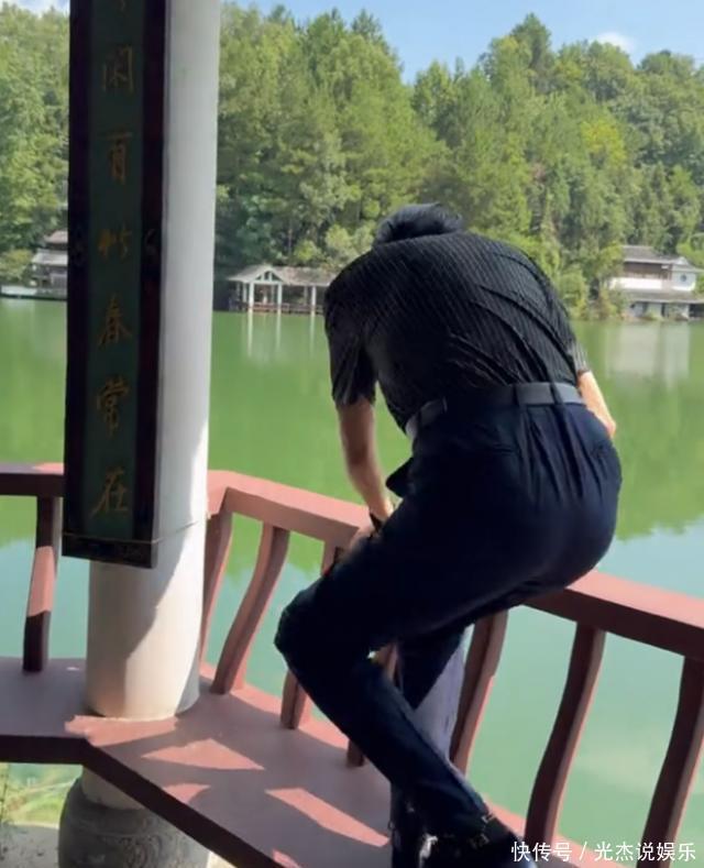 他还在一个凉亭中跳上了围栏坐台,在上头不雅赏景象,体格强健的跟年青东谈主相通。