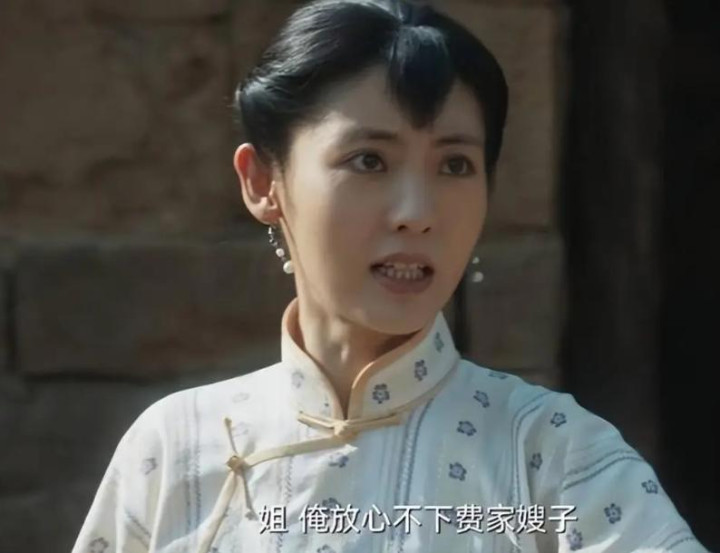 《归队》里有个扮装叫大阔枝,是松林镇酒馆的雇主娘,由蒋欣出演。
