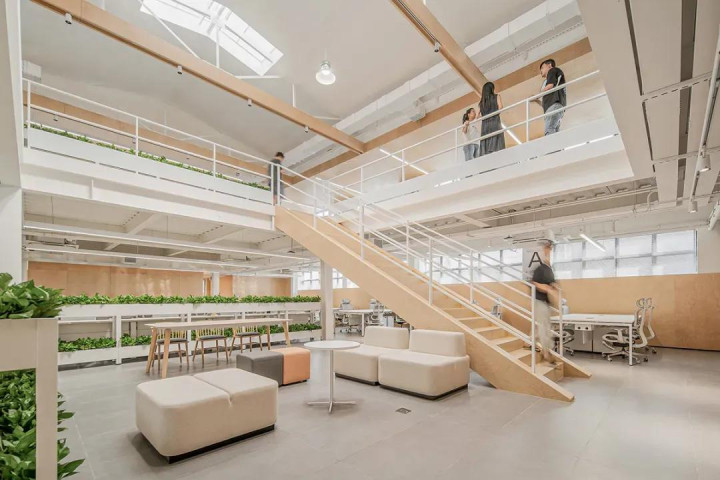 职责室的环境和“Lighthouse”字面刻画相同有着浓厚的艺术气味,工位绽开亮堂,还设有中庭、养猫区、母婴室等空间。Link回忆,在2024年10月认真入驻前,他们格外礼聘了联想师,对整个这个词厂房进行了翻新和装修。