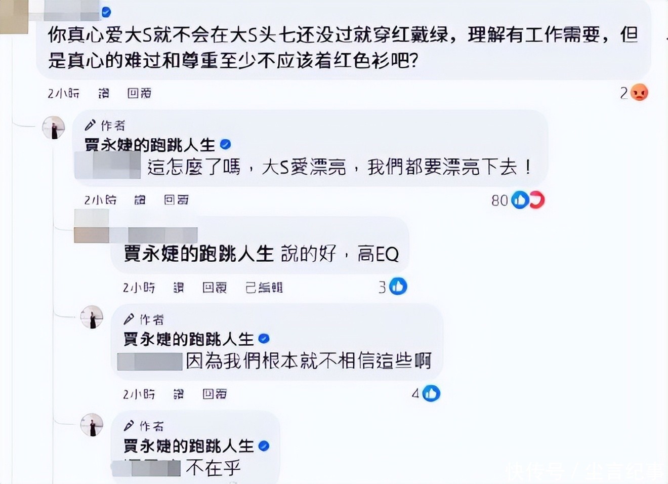 事实上这也曾不是贾永婕第一次在媒体账号上头公开回话对于大S家东谈主的事情。