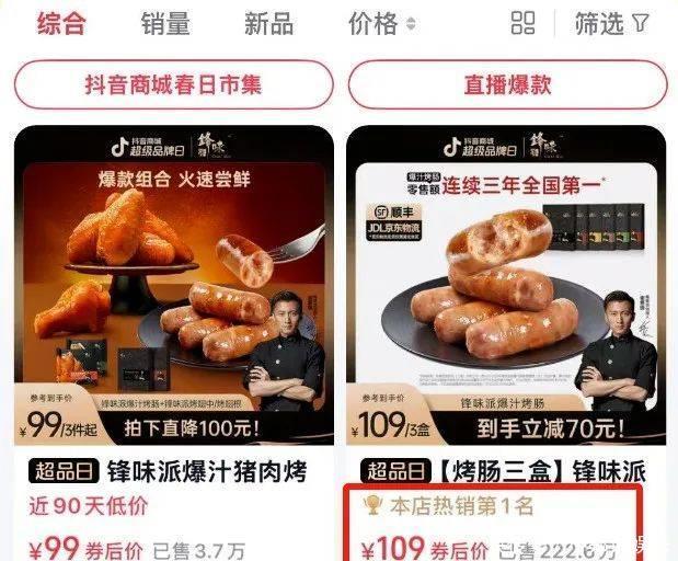 借助直播电商和明星创举东谈主影响力的叠加,锋味派马上破圈。
