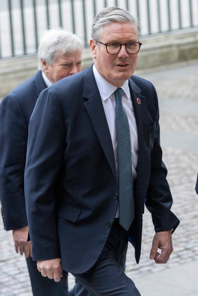 2025年5月8日,在英国伦敦,英国首相斯塔默抵达威斯敏斯特教堂进入感德典礼。新华社发
